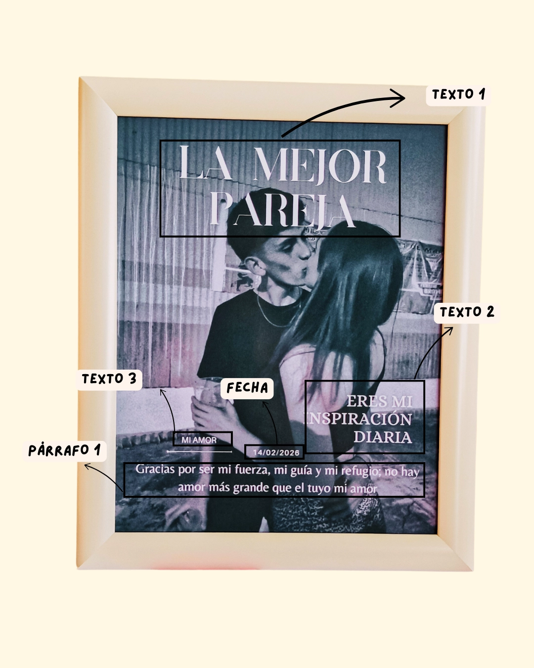 Cuadro personalizado con diseño de estilo revista que le da un toque que va más allá de lo ordinario.