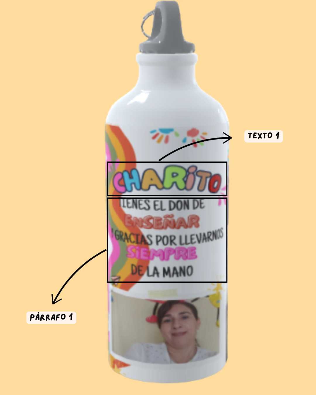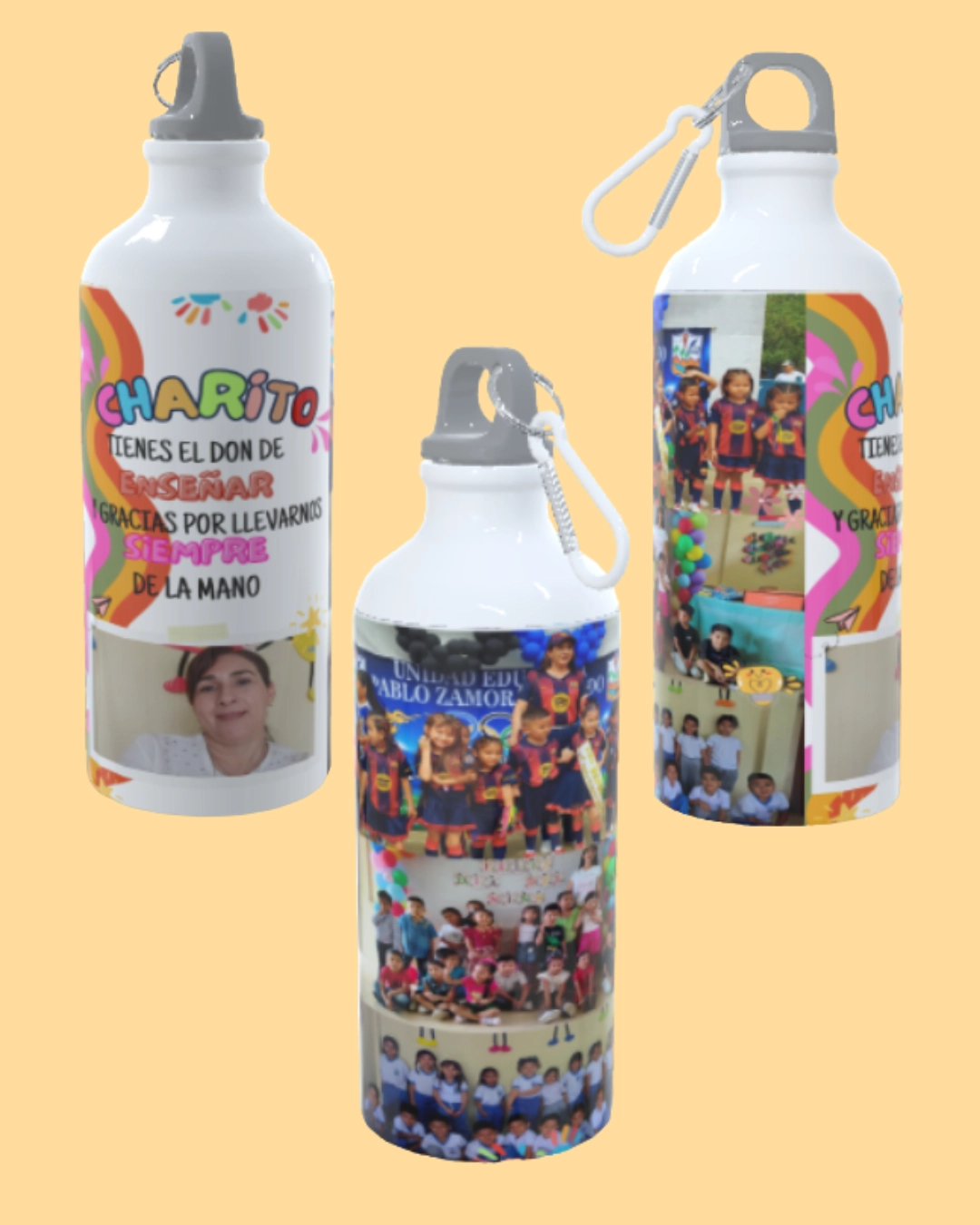 Termo sublimado 750 ml con diseño arcoíris con fotos